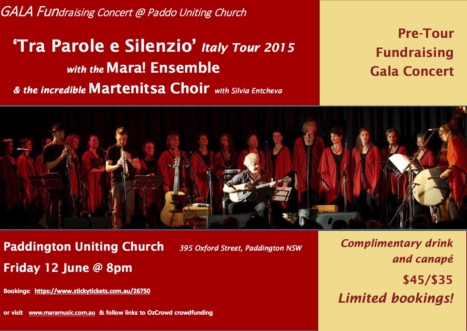 Mara! and Martenitsa's presented the tour's flagship work Tra Parole E Silenzio at one of our favourite Sydney venues Paddington Uniting Church on June 12. The concert also helped to raise funds for the band's on-ground costs during the tour.