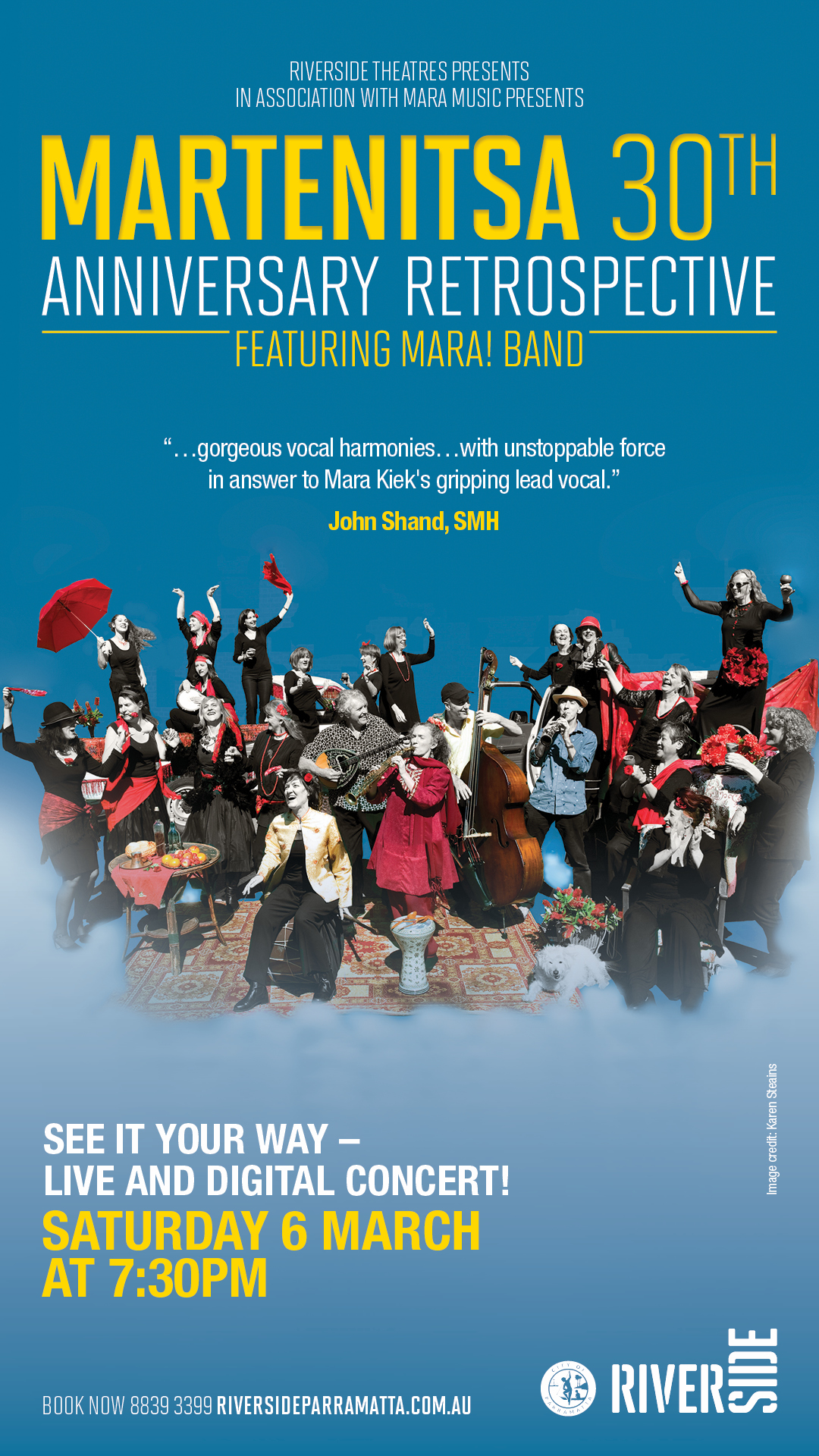 Martenitsa Choir's 30th Anniversary Retrospective concert at Riverside Theatre Parramatta on Saturday 6th March, 2021 was an historic event celebrating Martenitsa's 3 decades delighting Australian and international audiences with their signature sound that is inspired by and modelled on the captivating vocal quality of Bulgaria's traditional choirs.